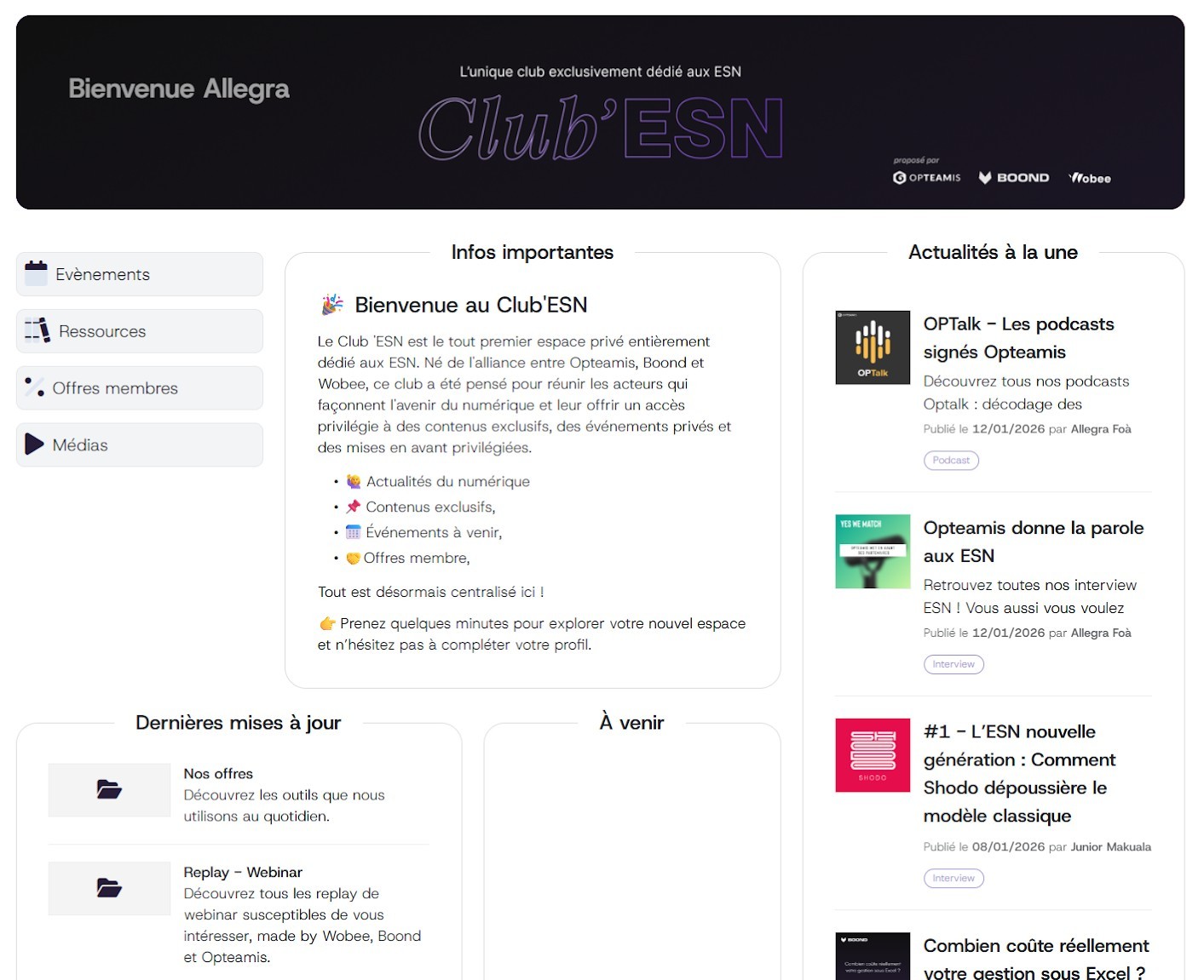 Créé par Opteamis, Boondmanager et Wobee, le Club’ESN, accessible gratuitement, est le cercle réservé aux ESN françaises qui veulent bénéficier d’une vision éclairée du marché, d’échanges entre pairs et d’avantages exclusifs pour accélérer leur croissance.